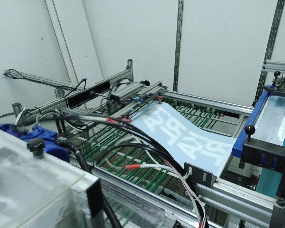 Baskı makinesi, transfer tozu serpme, temizleme, kurutma ve istifleme elemanlarından oluşur.