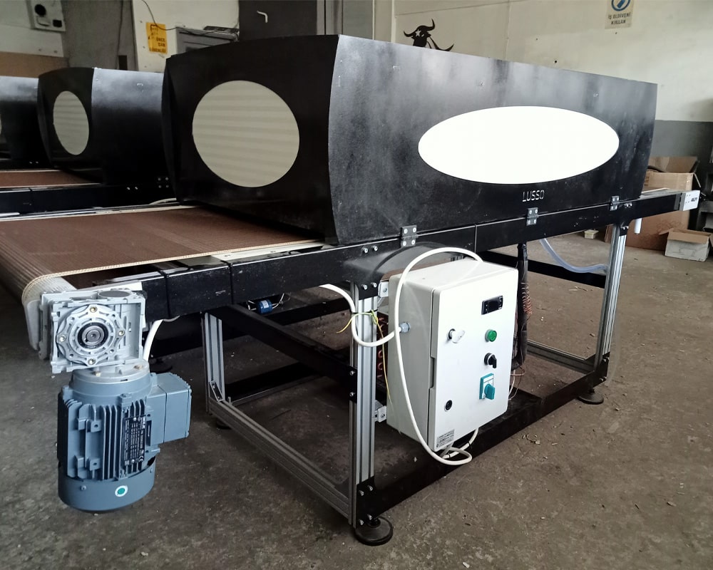 Kurutma Konveyörlerinde olduğu gibi bir taşıyıcı bant ile çalışan ve baskı yapılmış malzemeyi hızlı bir şekilde soğutmaya yarayan konveyör sistemleridir. Bant hızı ve soğutma değerleri digital olarak kontrol edilebilmektedir. İlave olarak kabin içi hava sirkülasyonu (evaparatör) fan sistemi de kullanılmaktadır. Baskılı çikolata tabakalarının serigrafi baskı ile üretiminde basılmış PVC tabakalarının süratle termoform makinelerine gönderebilmek için bu soğutma tünelleri kullanılmaktadır.