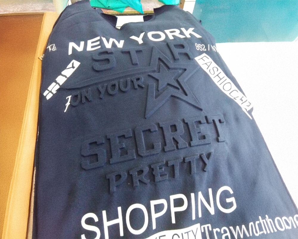 Silikon baskı için serigrafi baskı yöntemi kullanılır. Silikon uygulanan yüzey emboss -gofre yapabilen özel pres ve kalıplar kullanılarak kabartma şeklinde görsel elde edilir.